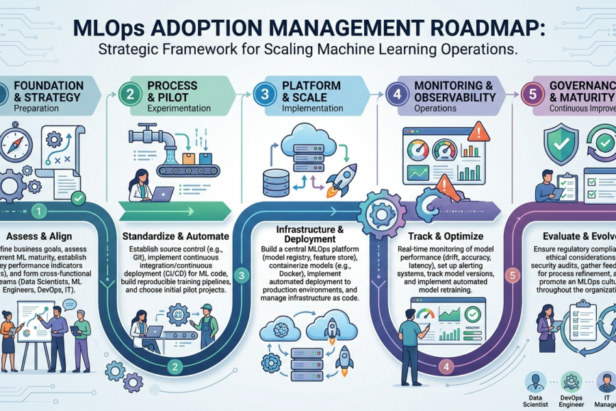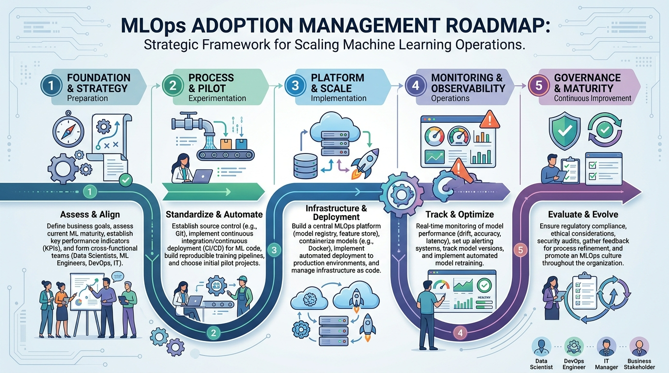 MLOps adoption management helps organizations guide teams through AI transformation while building reliable machine learning workflows and operations.